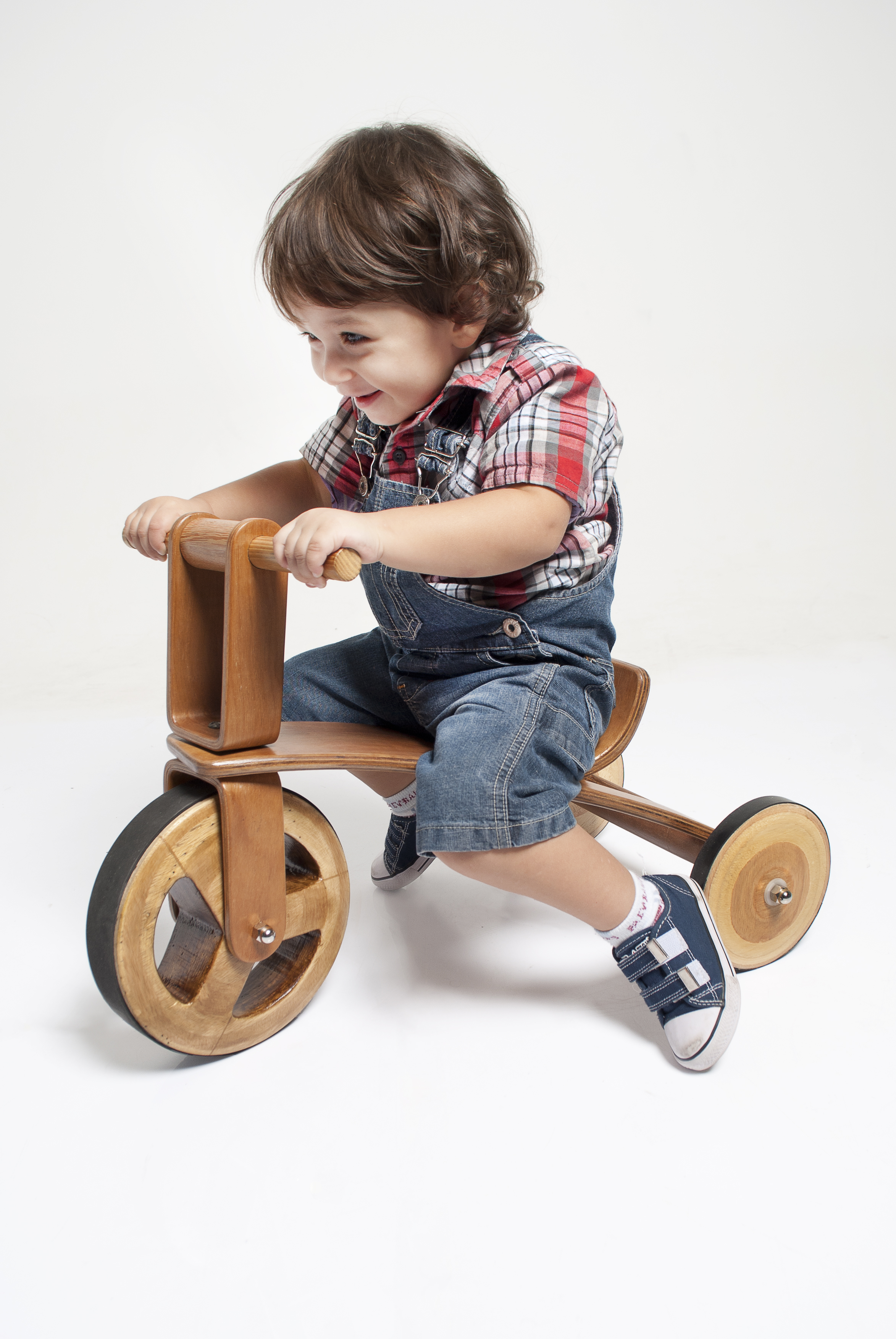 O jovem Gustavo Martini, de 22 anos, é mais um que desponta no mercado de design infantil. Ele é criador do triciclo Woody que traz consigo aquela nostalgia gostosa de brinquedo de antigamente. Todo feito em madeira, o conceito surgiu da convivência de Gustavo com o sobrinho Pietro, nascido em 2009: