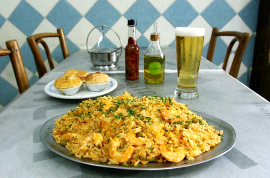As paredes em azulejo azul e branco e a arquitetura original garantem aquela nostalgia charmosa de “antigamente”. É uma ótima pedida para um almoço no salão (no mezanino há ar condicionado), se você quer mais tranquilidade, ou bons petiscos nas mesinhas da parte de fora.