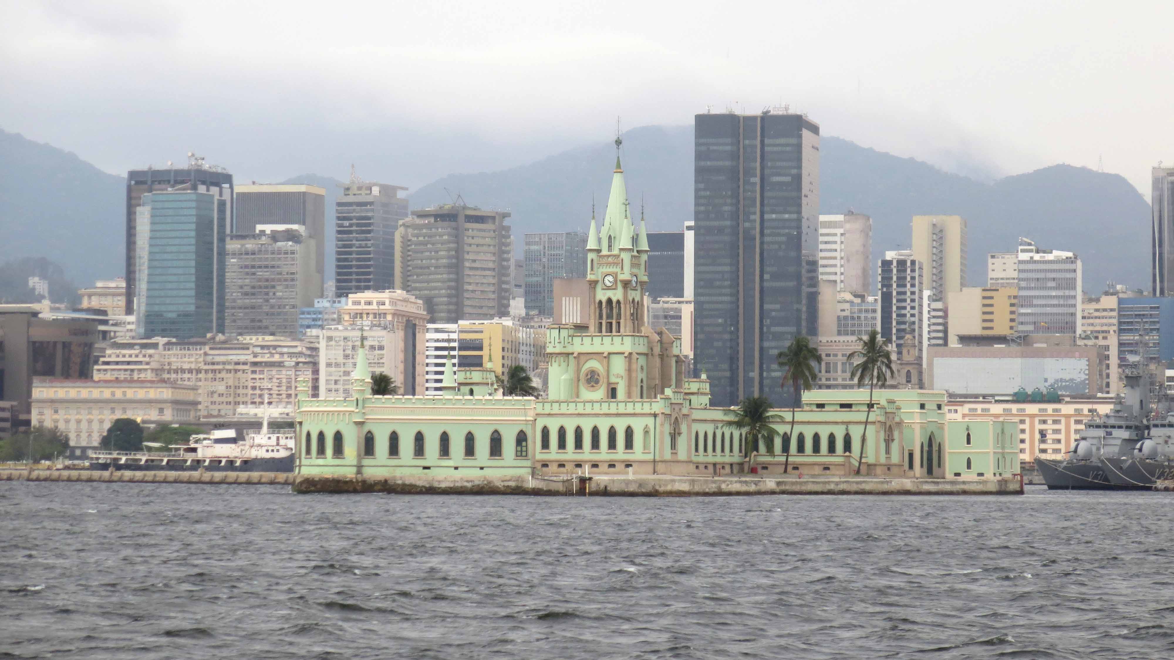 Ao sair da área da Marinha, a paisagem (natural e urbana) começa a se revelar e avistamos a Ilha Fiscal (na volta do passeio, a embarcação passa mais pertinho da Ilha Fiscal e é possível, inclusive, ver a área interior e detalhes da edificação), a ponte Rio-Niterói e um pouco do Centro do Rio fotos abaixo).