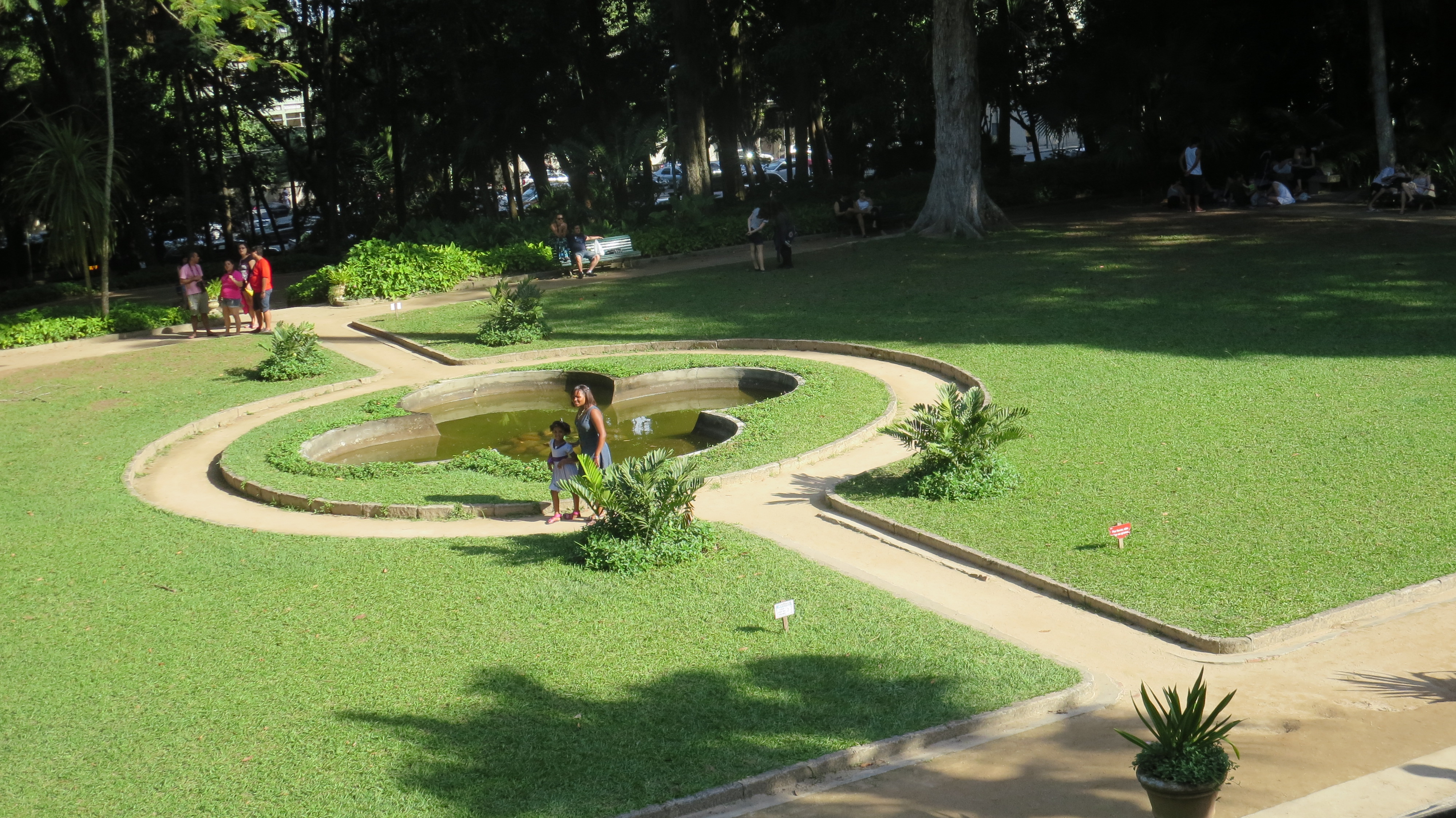 Ao redor do chafariz há um gramado bacanudo, mas você só pode se instalar em duas áreas laterais sem grama e com banquinhos de ferro. No mais, é só passear ao redor e esperar lindos arco-íris : )
