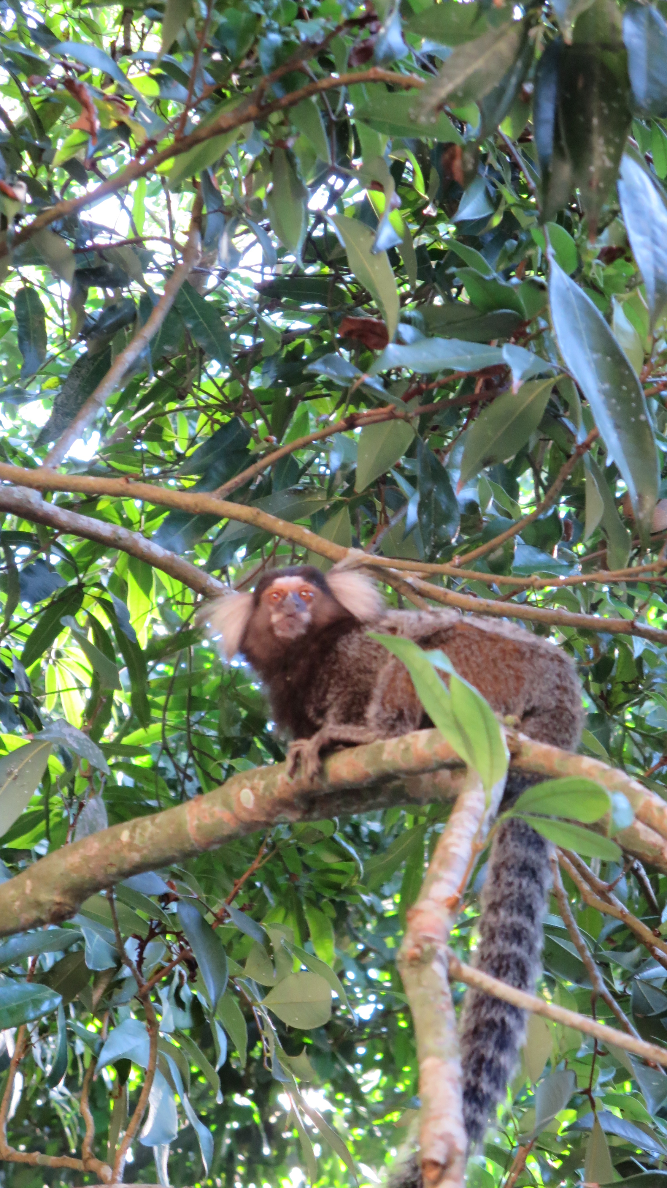 Os macacos maiores costumam chegar ao fim da tarde. Tome cuidado com suas bolsas e outras tralhas. Assim como pegam os sacos de lixo, eles têm força suficiente para pegar a sua bolsa e levar para cima da árvore. E jogar tudo lá de cima. É sério!