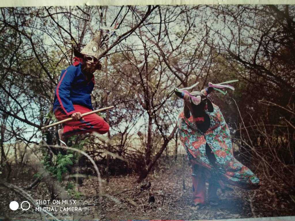 Na visita ao Museu Orgânico do Reisado de Caretas, Felipe, que é ator e possui formação em canto e dança, logo se alinhou com o Mestre Antônio Luiz. Os dois acabaram tocando instrumentos e arriscando uma dança popular ensinada pelo Mestre. Felipe relata essa experiência:
